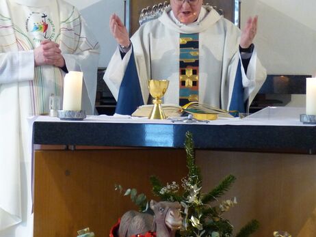 . Der Pilger der Hoffnung ist in Betlehem angekommen und bringt seine Geschenke mit den Kindern zur Krippe. Es sind das Herz, die Liebe, gute Taten, aber auch Fragen, Ängste und Wunden. Alles können wir beim göttlichen Kind ablegen. Er nimmt uns so wie wir sind. Der Kinder- und Jugendchor gestaltete unter der Leitung von Johannes Haubs den Gottesdienst.