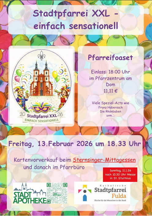 Gott, unser Vater, wir sind deine Kirche hier am Ort in der Innenstadt von Fulda. Wir sind als dein Volk, deine Gemeinde unterwegs in eine neue Zeit. Wir haben unsere Vergangenheit mit Licht und Dunkel, doch du warst und bist immer unser Gott.